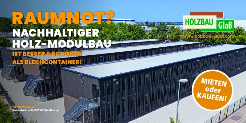 Ideal für Städte, Gemeinden, soziale Einrichtungen sowie staatliche Institutionen, die temporären oder permanenten Raumbedarf haben! Aus Holz, nachhaltig mit bestem Raumklima! Keine Blech-Container!